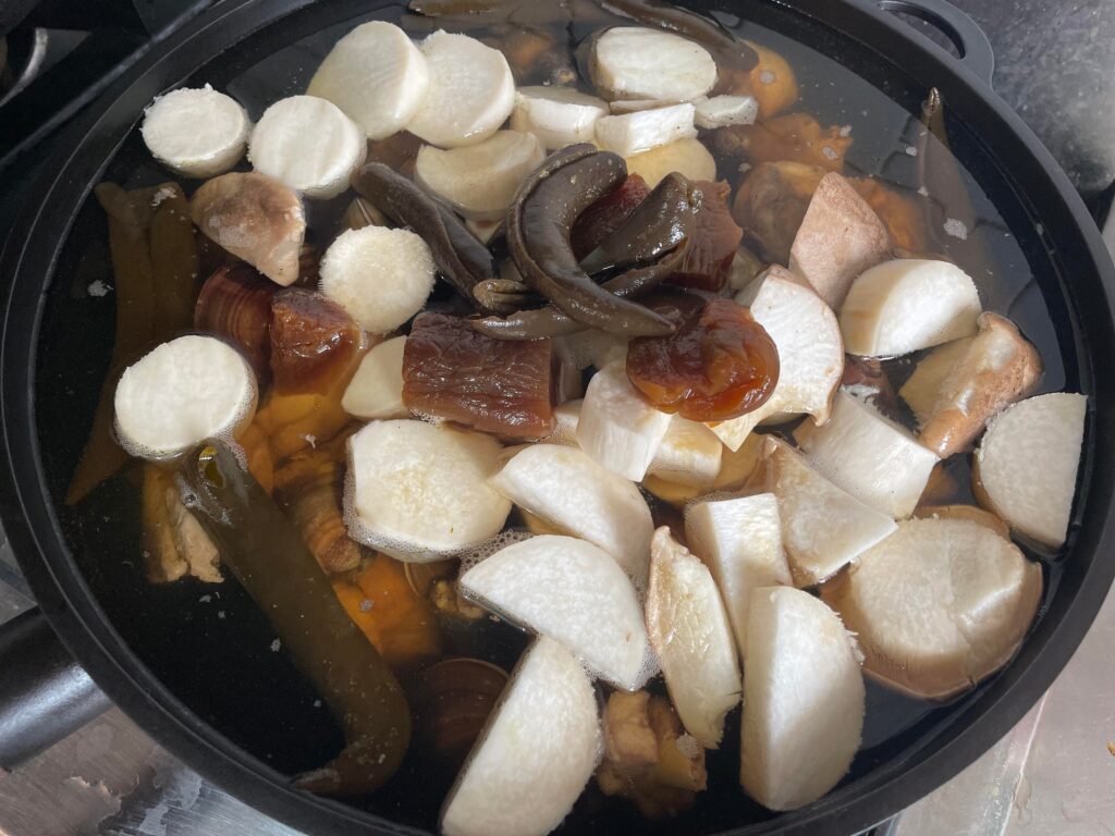 大火烹煮下約15分鐘湯就會滾囉,之後轉中小火繼續燉煮一下。